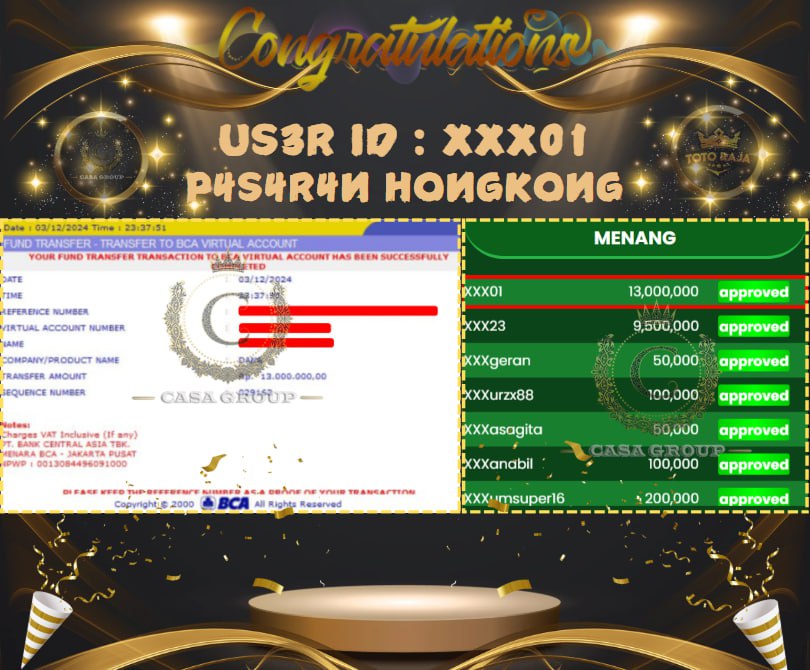 Selamat untuk User ID XXX01 yang sudah berhasil menang di pasaran HONGKONG di situs TOTORAJA dengan total kemenangan mencapai 13.000.000 Juta di bayar lunas