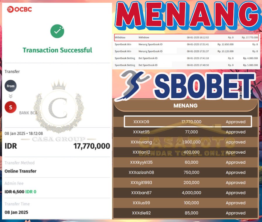 Bagi bosku yang ingin merasakan kemenangan yang sama bisa langsung segera mendaftarkan akunnya di >>CASAGROUP
