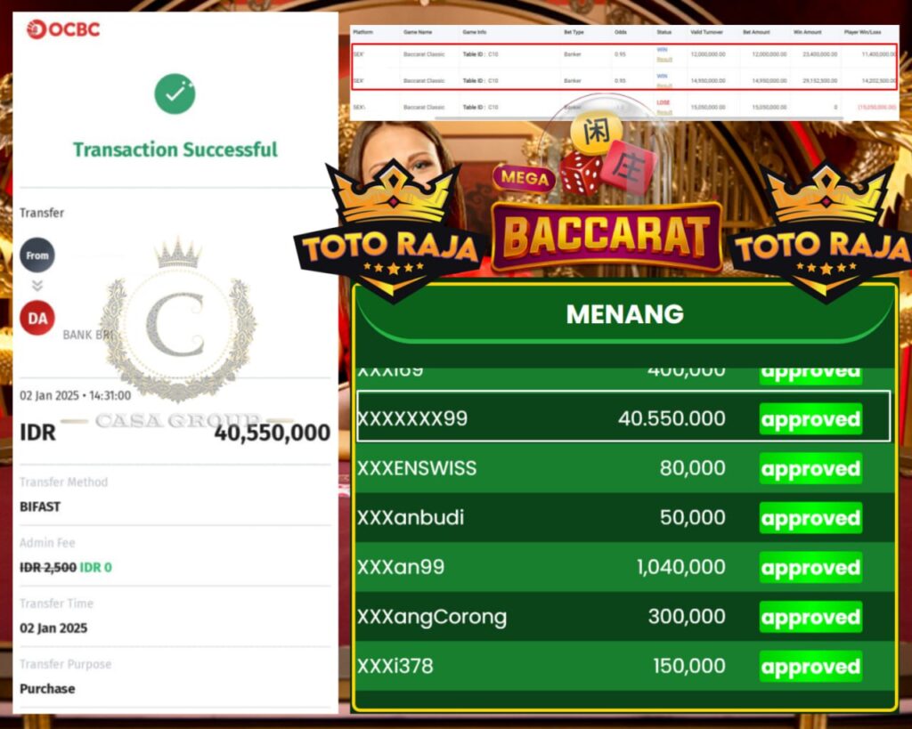 Selamat kepada bosku yang bermain di TOTORAJA dengan user id 𝒳𝒳𝒳𝒳𝒳𝒳𝟫𝟫 yang telah mendapatkan kemenangan besar di game BACARAT > PRAGMATIC LIVE CASINO