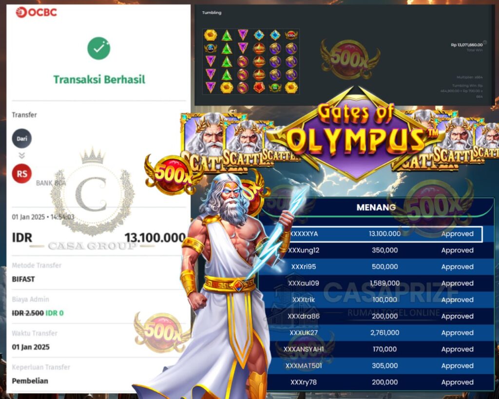 SELAMAT KEPADA MEMBER CASAPRIZE USER ID : XXXXXYA MENANG DI GAME PRAGMATIC PLAY >> GATES OF OLYMPUS