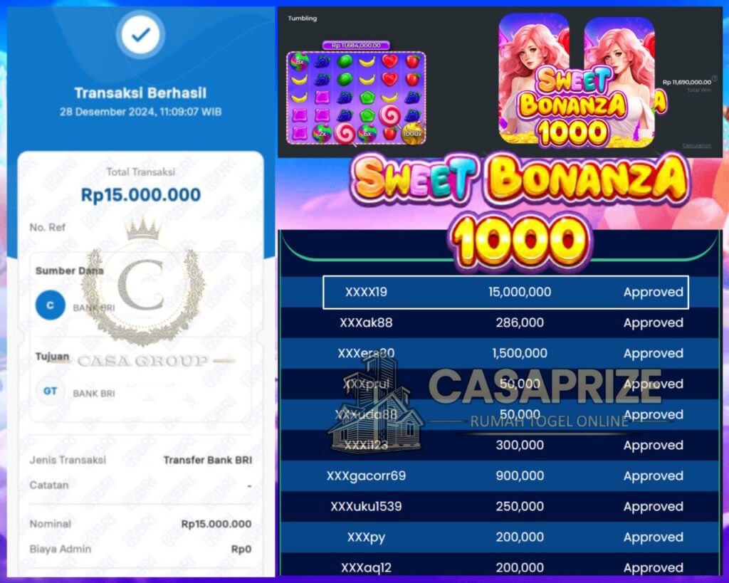 SELAMAT KEPADA MEMBER CASAPRIZE USER ID : XXXX19 MENANG DI GAME PRAGMATIC PLAY >> SWEET BONANZA 1000