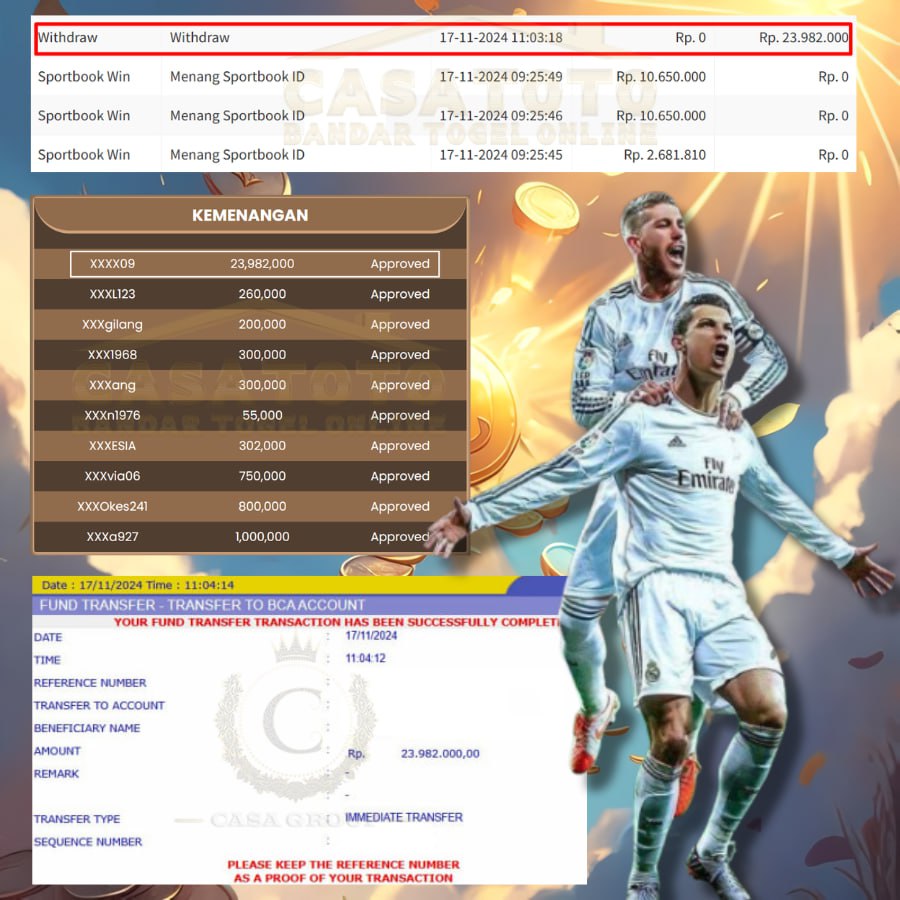 Bagi bosku yang ingin merasakan kemenangan yang sama bisa langsung segera mendaftarkan akunnya di >> CASAGROUP.