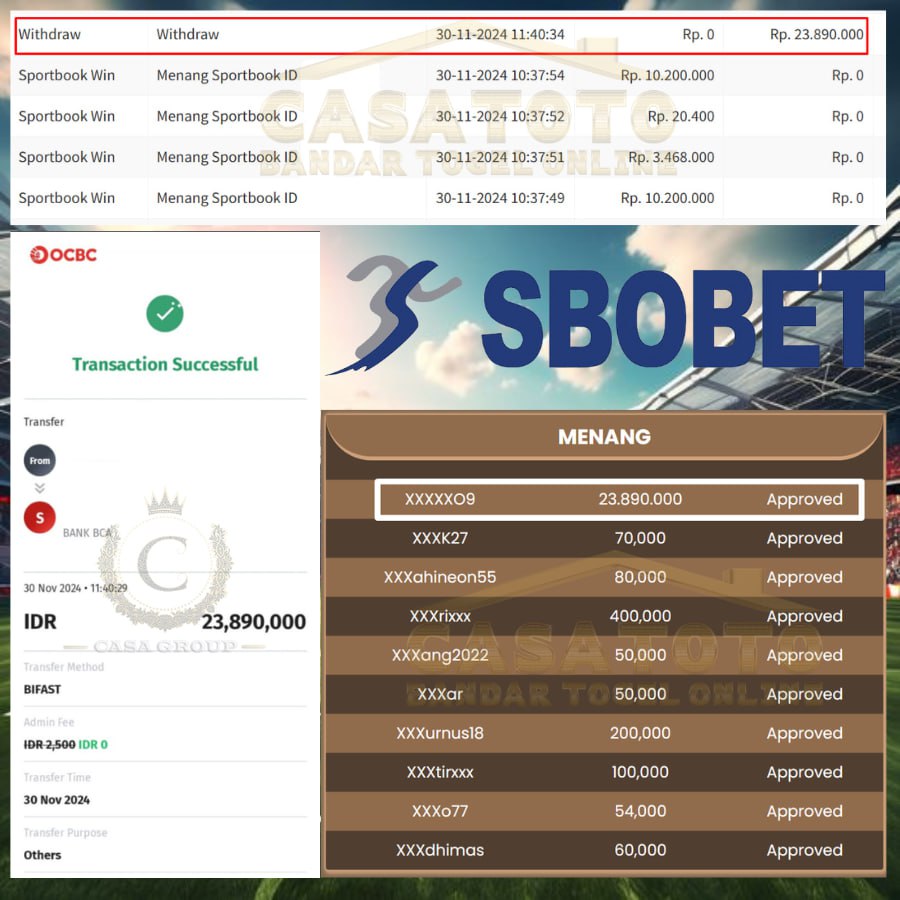 Bagi bosku yang ingin merasakan kemenangan yang sama bisa langsung segera mendaftarkan akunnya di >>CASAGROUP