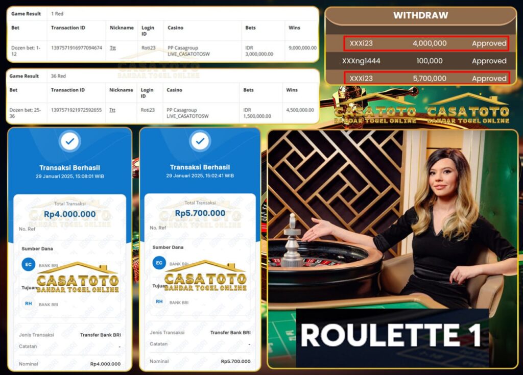 CASATOTO MENANG DI CASINO ROULETTE 1 TOTAL KEMANGAN 9 JUTA