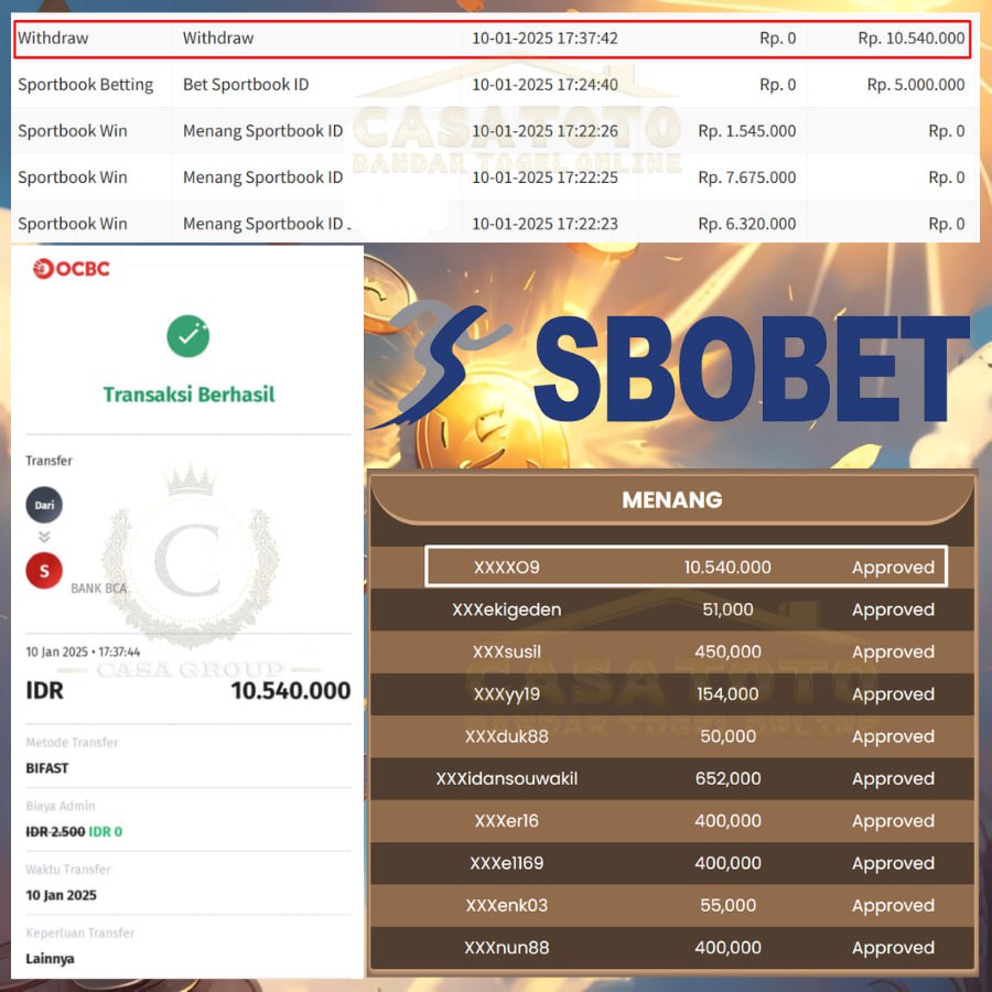 yang telah mendapatkan kemenangan besar di CASATOTO GAME SBOBET dengan kemenangan yang luar biasa.