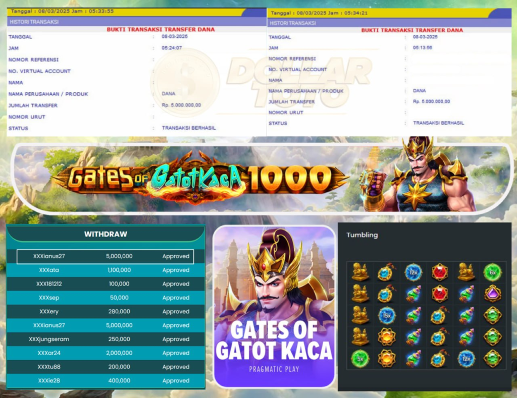 Selamat Kepada Member DOLLARTOTO dengan User ID XXXARUS27 Atas Kemenangan di Game GATES OF GATOT KACA 1000 – PRAGMATIC PLAY.