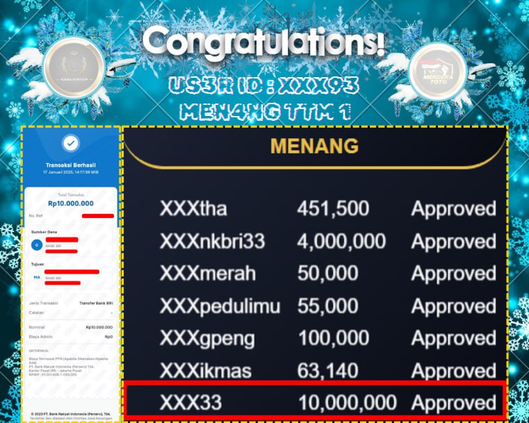 SELAMAT ATAS JACKPOT PAUS UNTUK MEMBER MERDEKATOTO DENGAN USER ID : XXX33 YANG TELAH BERHASIL MENANG PADA PASARAN TOTOMACAU 1 Rp. 10.000.000,-