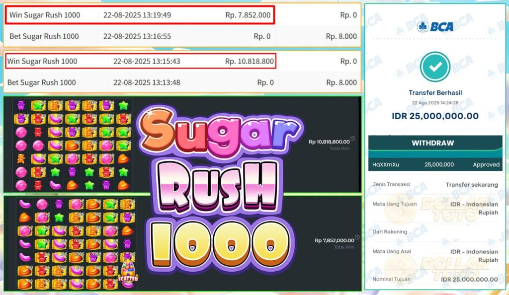 Selamat Kepada Member DOLLARTOTO dengan Username HaXXmXu Yang Beruntung Mendapatkan Kemenangan Besar di DOLLARTOTO dengan Dalam Permainan SUGAR RUSH 1000 >> PRAGMATIC PLAY SLOT.