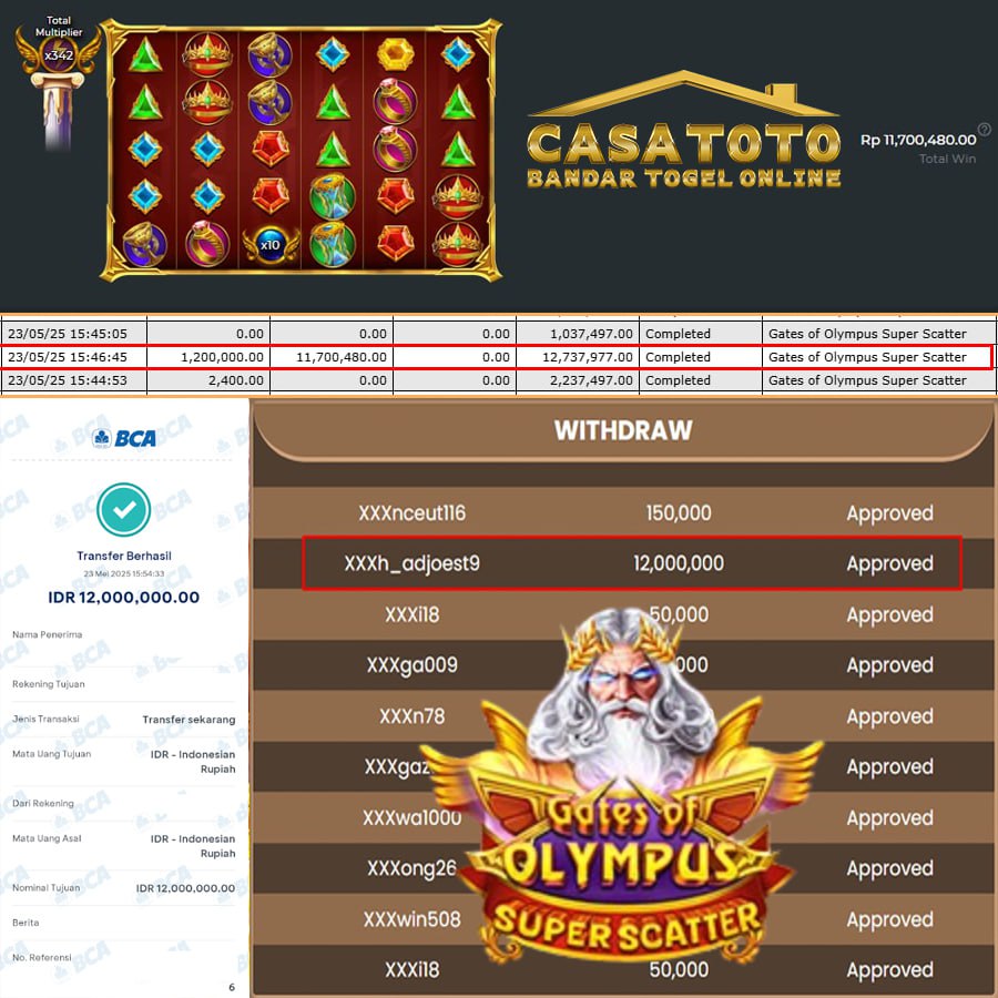 CUAN MELEDAK DI CASATOTO! SLOT OLYMPUS SUPER SCATTER BAWA PULANG 12 JUTA!
