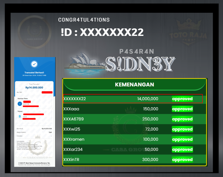 Selamat atas kemenanganmu yang gemilang!”kepada user id XXXXXXX22 uang sudah mendapat kan cuan besar dari hasi bet pasaran SYDNEY di situs totoraja