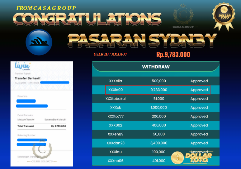 Selamat atas keburuntungan yang berpihak kepada user id xxxxx00 yang sudah mendapatkan rezeki dari bet HONGKONG di situs dollartoto total kemenangan sebesar Rp,9.200.000 telah di bayar lunas dan secepat kilat ,