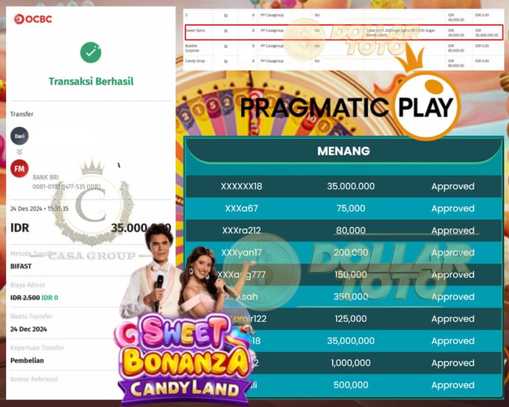 SELAMAT KEPADA MEMBER DOLLARTOTO, USER ID : XXXXXX18, MENANG DI GAME PRAGAMATIC LIVE CASINO > SWEET BONANZA CANDY LAND