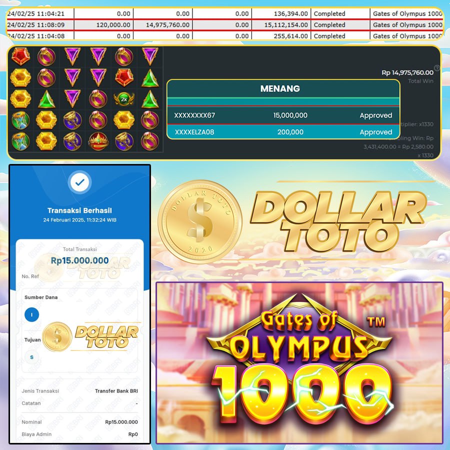 Selamat Kepada Member DOLLARTOTO dengan User ID XXXXXXXX67 Atas Kemenangan di Game GATES OF OLYMPUS 1000 – PRAGMATIC PLAY.