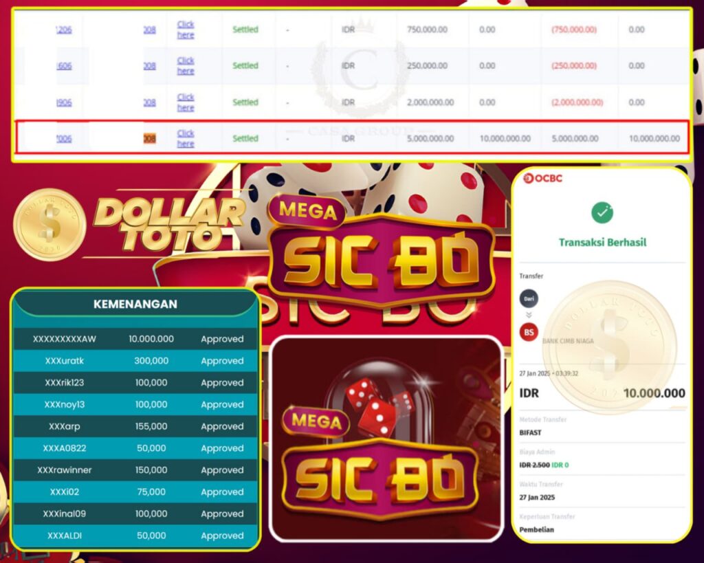 SELAMAT KEPADA MEMBER DOLLARTOTO, USER ID : XXXXXXXXXXXXXAW TELAH JACKPOT DI GAME PRAGMATIC LIVE CASINO > MEGA SIC BO
