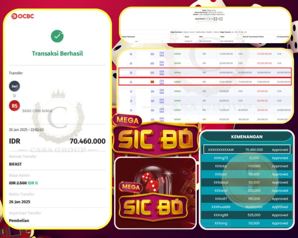 SELAMAT KEPADA MEMBER DOLLARTOTO, USER ID : XXXXXXXXXXXXXAW TELAH JACKPOT DI GAME PRAGMATIC LIVE CASINO > MEGA SIC BO