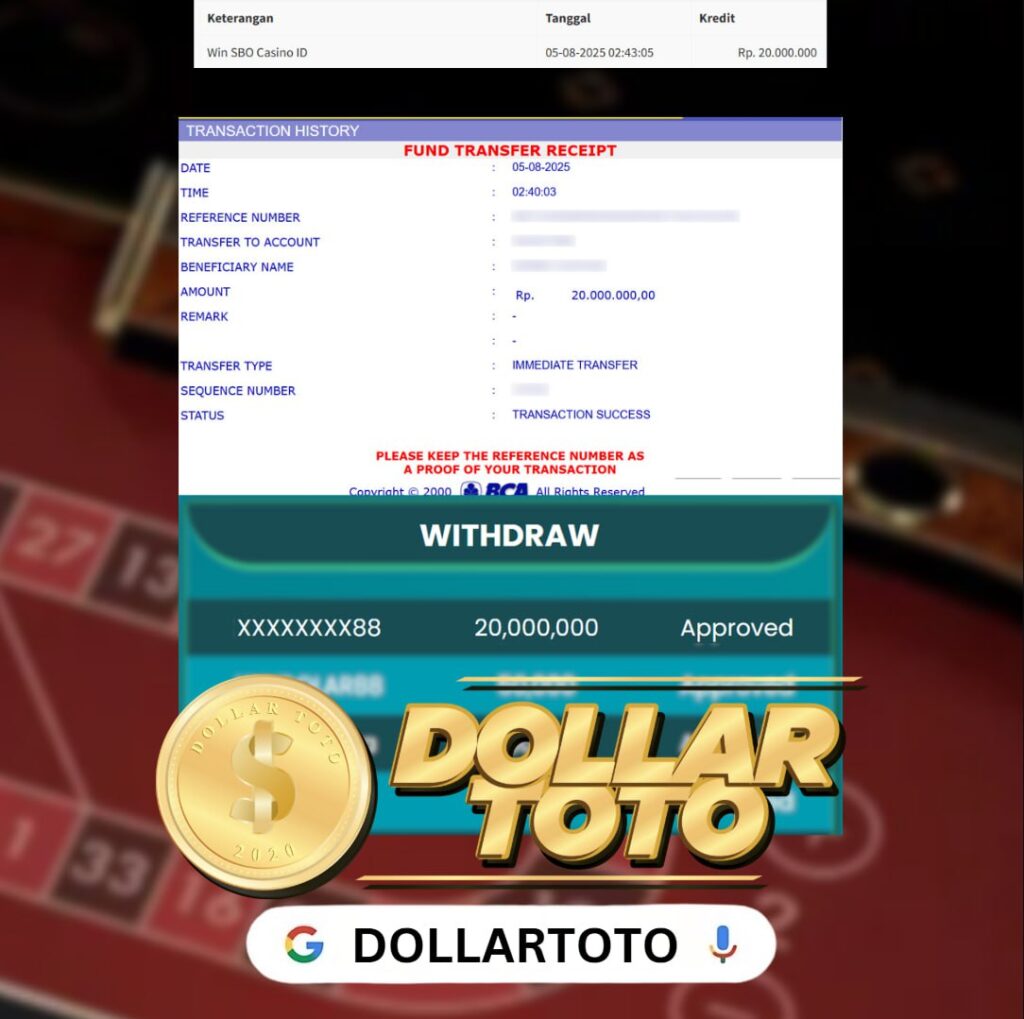 Kemenangan luar biasa di permainan SBOBET lewat DOLLARTOTO akhirnya kembali ke tangan yang tepat