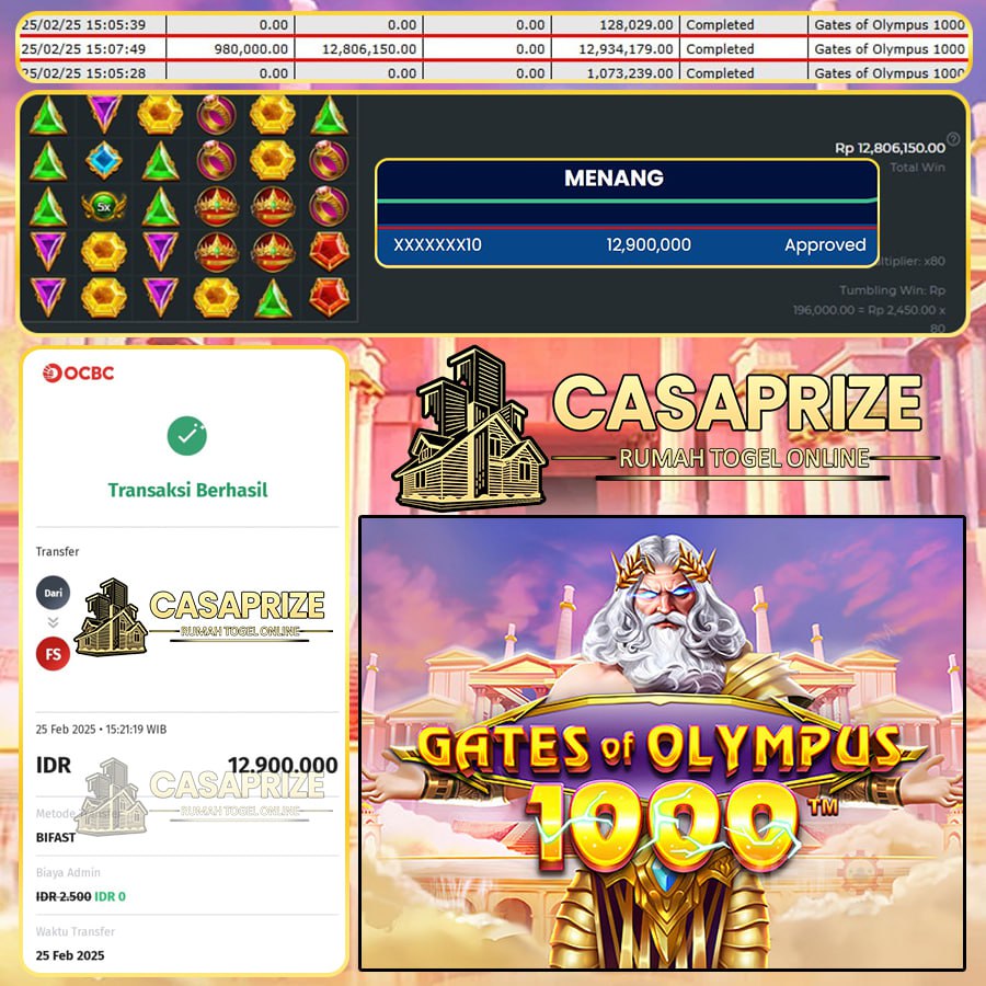 Selamat kepada bosku yang bermain di CASAPRIZE dengan user id XXXXXXX10 yang telah mendapatkan kemenangan besar di game GATES OF OLYMPUS 1000