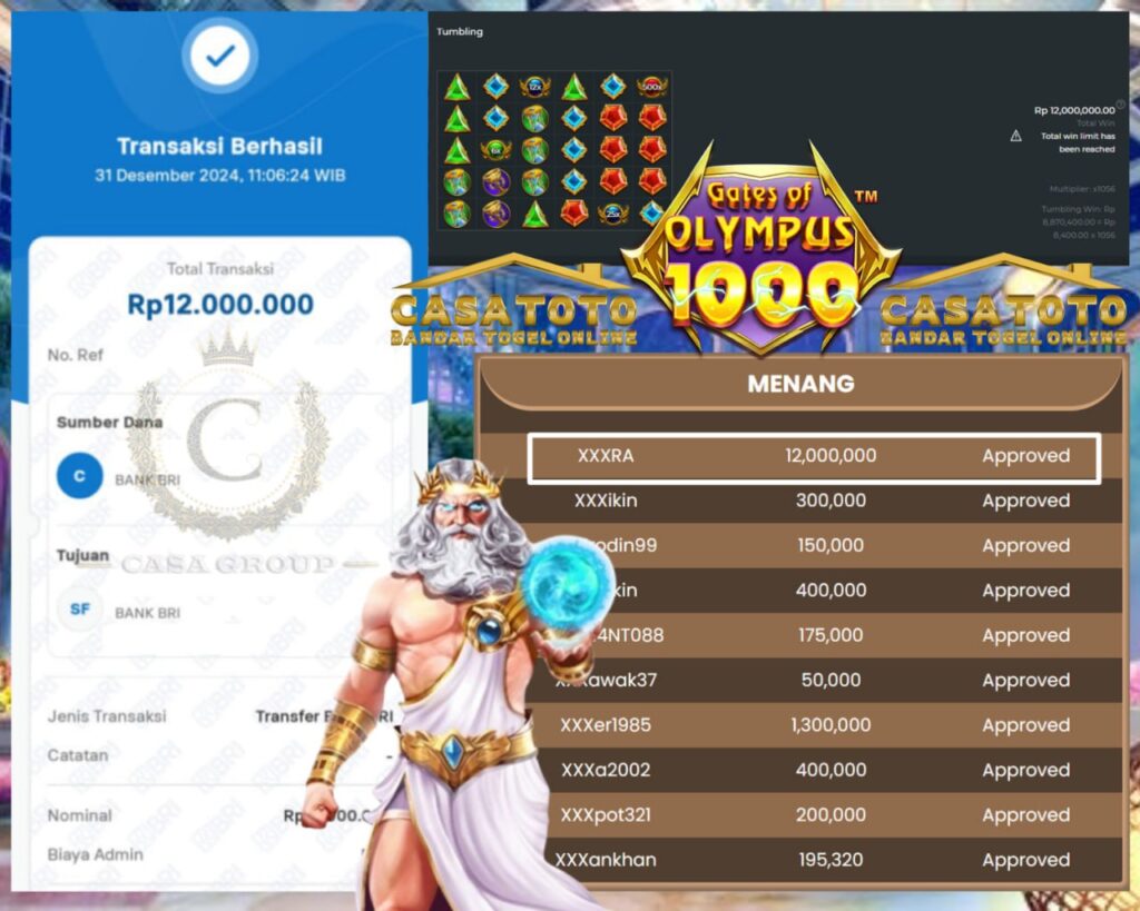 SELAMAT KEPADA MEMBER CASATOTOUSER ID : XXXRA MENANG DI GAME PRAGMATIC PLAY >> GATES OF OLYMPUS 1000