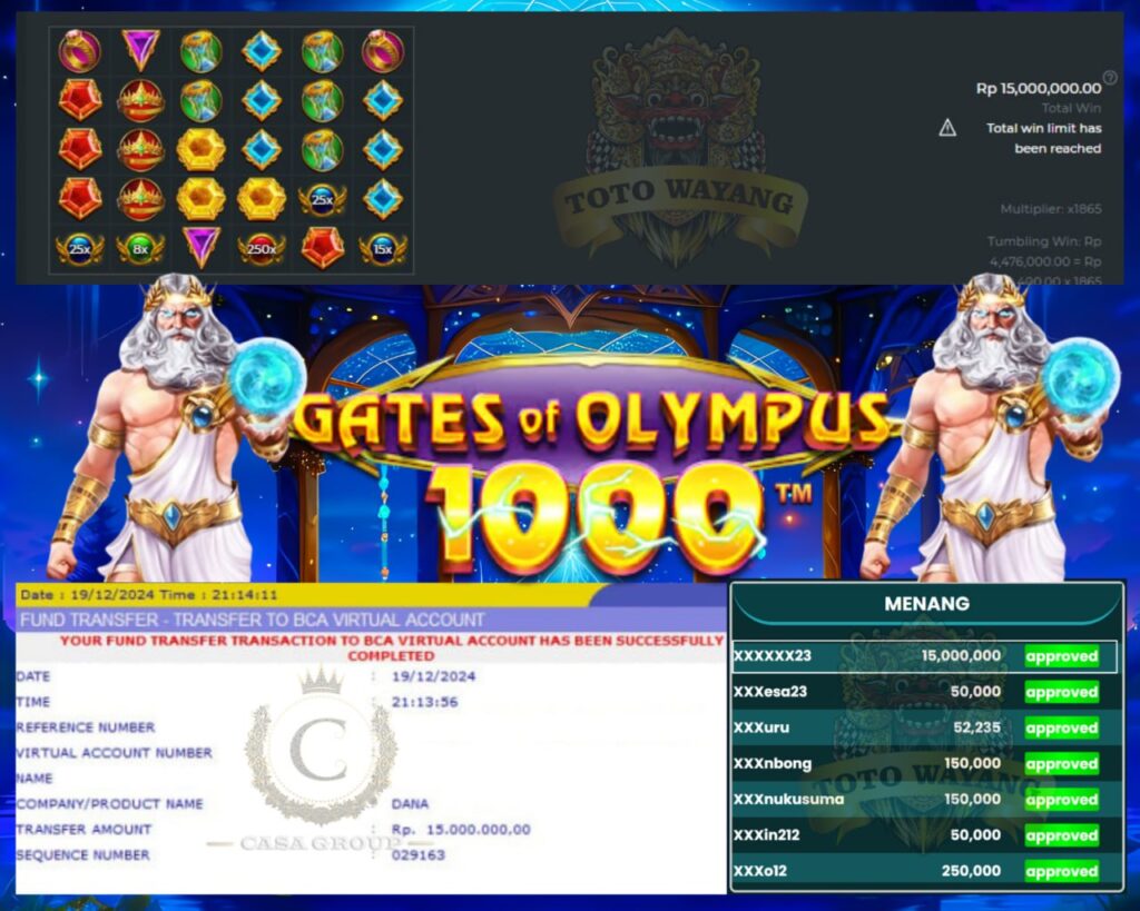 SELAMAT KEPADA MEMBER TOTOWAYANG USER ID : XXXXXX23 MENANG DI GAME PRAGMATIC PLAY >> GATES OF OLYMPUS 1000