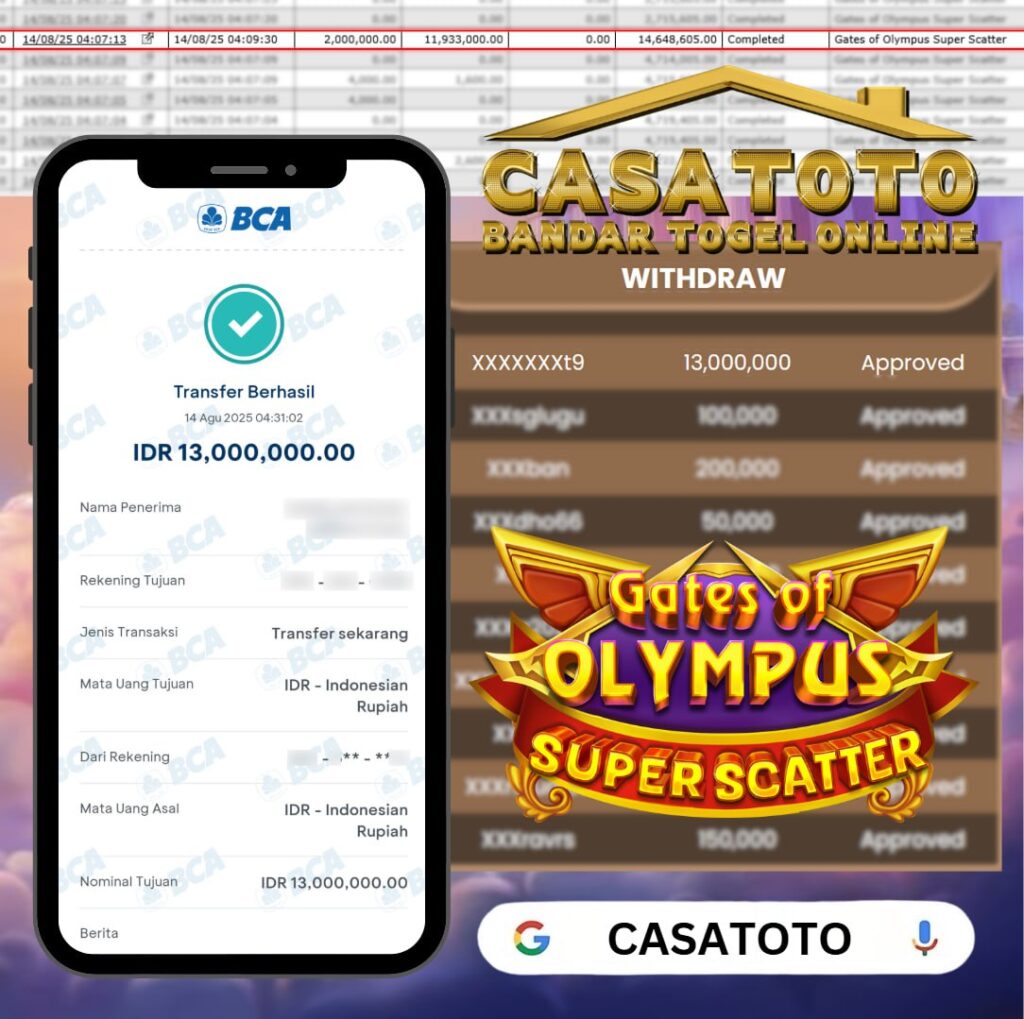 Selamat Kepada Member CASATOTO dengan Username XaXcX_adXoeXX9 Yang Beruntung Mendapatkan Kemenangan Besar di CASATOTO.