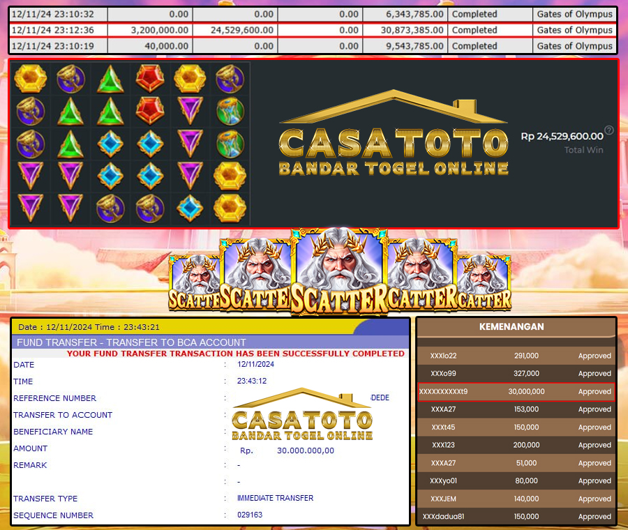 SELAMAT KEPADA MEMBER CASATOTO, USER ID : XXXXXXXXXXt9, MENANG DI GAME PRAGMATIC SLOT> GATES OF OLYMPUS