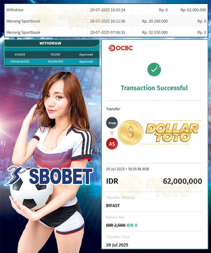 Kami ucapkan selamat atas kemenangan besarnya di permainan SBOBET melalui DOLLARTOTO.