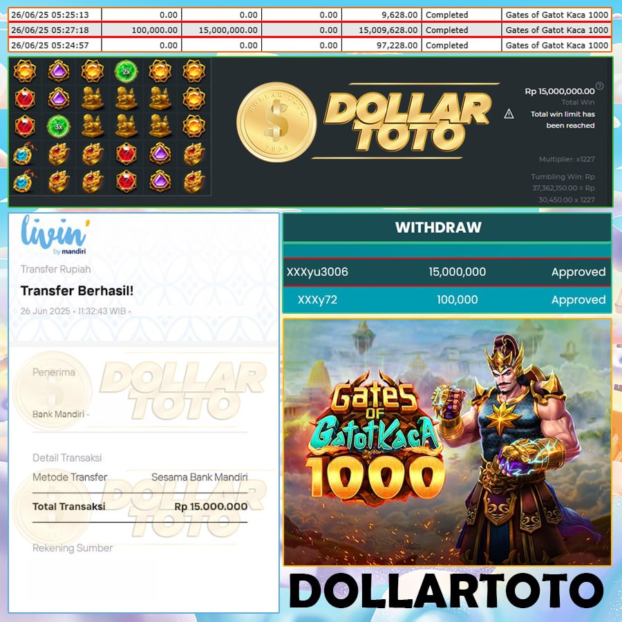 Selamat kepada member yang telah mendaftar di DOLLARTOTO dengan user id XXXyu3006 yang telah mendapatkan kemenangan besar dalam game GATES OF GATOTKACA 1000 – PRAGMATIC PLAY.