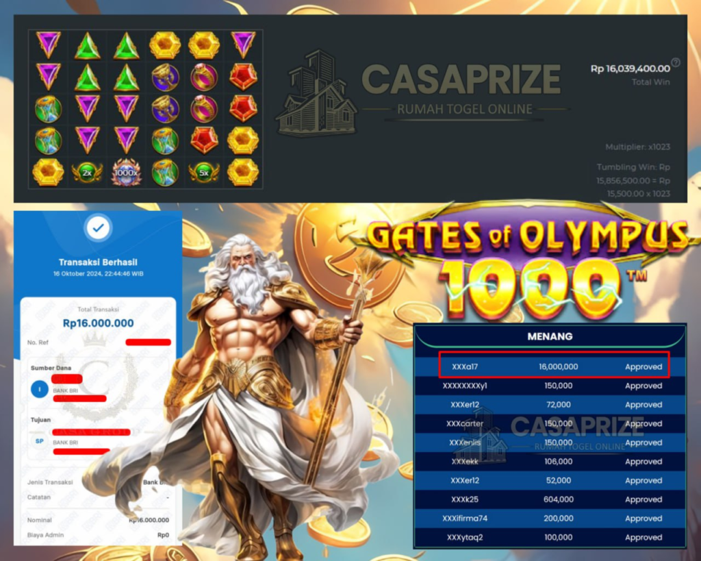 Total kemenangan mencapai 16 Juta lunas dibayar ke tujuan tanpa ada potongan.