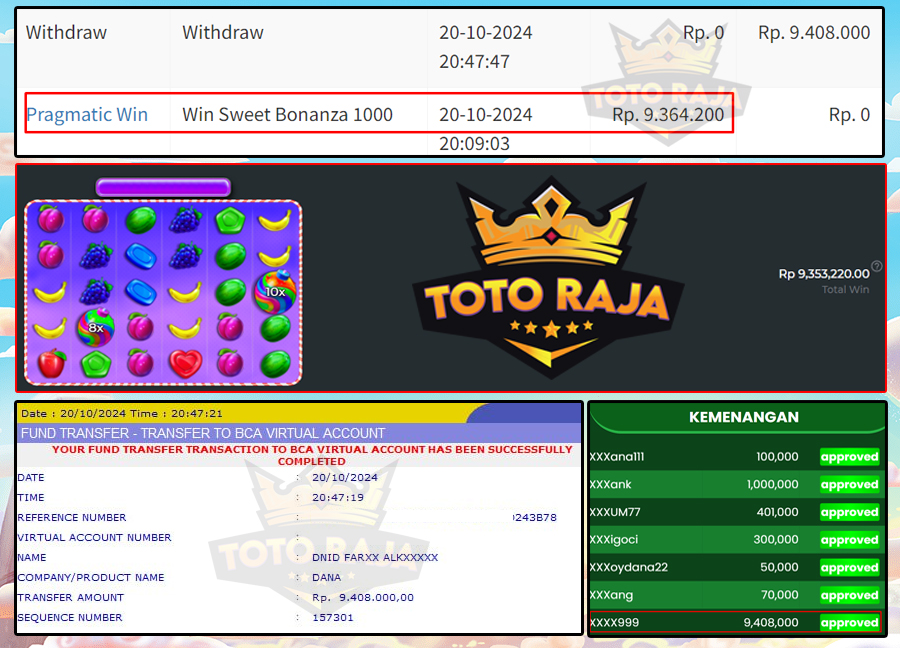 Kami ucapkan selamat untuk User ID XXXX999 yang sudah berhasil menang di permaina High Flyer dengan total kemenangan sebesar Rp.9.408.000 disitus TOTORAJA