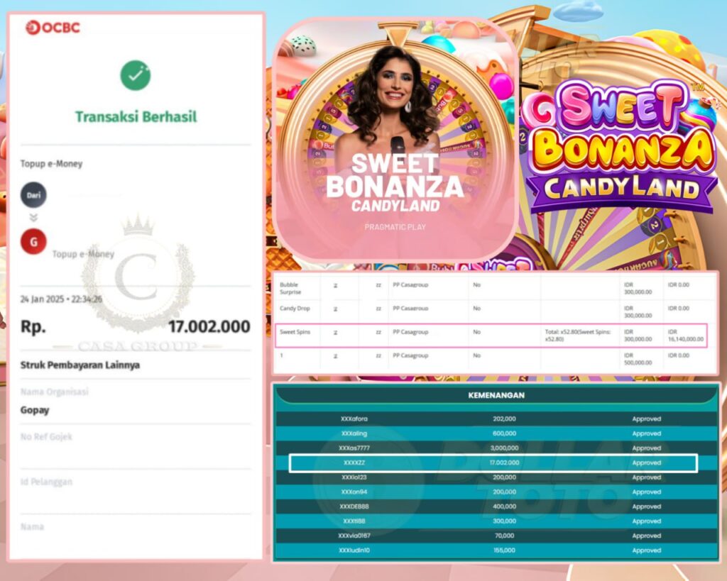 SELAMAT KEPADA MEMBER DOLLARTOTO  USER ID : XXXXZZ , MENANG DI GAME PRAGMATIC LIVE SWEET BONANZA CANDYLAND
