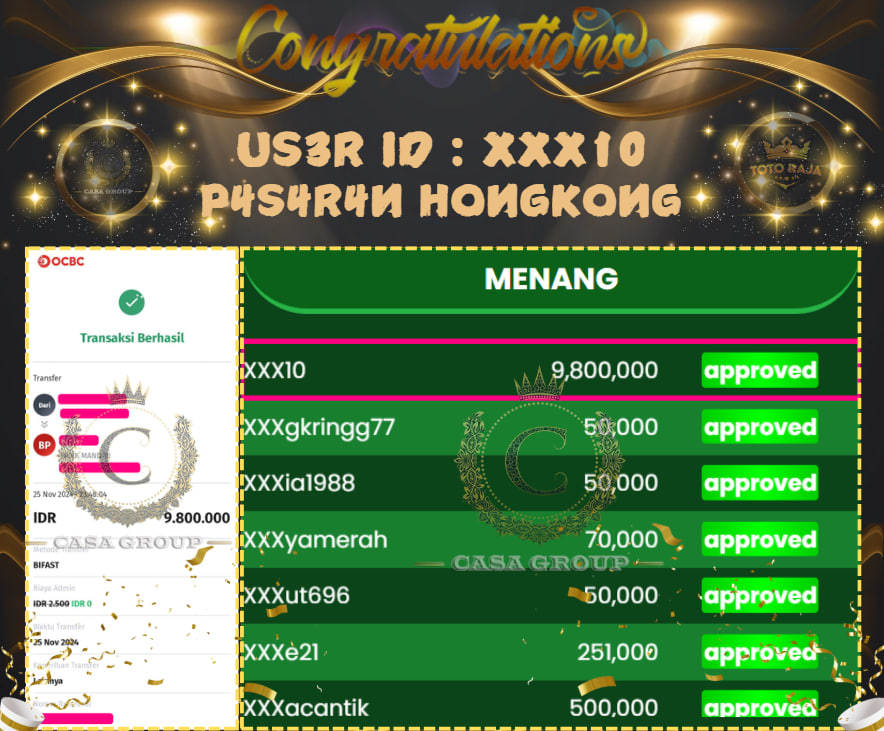 SELAMAT ATAS JACKPOT PAUS UNTUK MEMBER TOTORAJA DENGAN USER ID : XXX10 YANG TELAH BERHASIL MENANG PADA PASARAN HONGKONG SEBESAR Rp. 9.800.000,- UNTUK DANA KEMENANGAN SUDAH LANGSUNG DIBAYAR LUNAS, UNTUK MEMBER YANG BELUM BERHASIL MENDAPATKAN KEMENANGAN BESAR JANGAN BERKECIL HATI SEGERA DAFTARKAN AKUN ANDA AGAR BISA MENDAPATKAN JACKPOT .