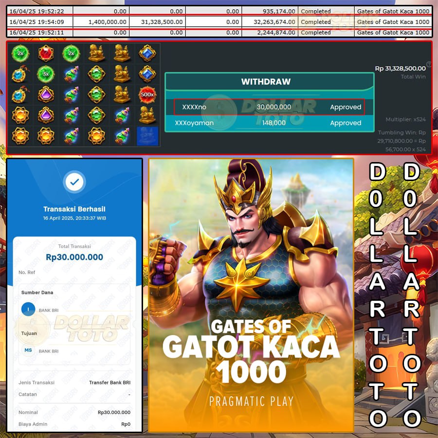 Selamat Kepada Member DOLLARTOTO dengan Username XXXano Yang Beruntung Mendapatkan Kemenangan Besar di Dalam Permainan PRAGMATIC SLOT >> GATES OF GATOT KACA 1000
