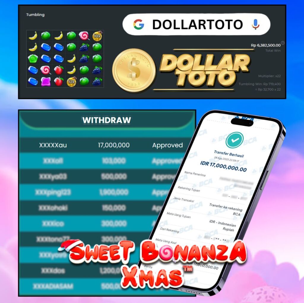 SELAMAT KEPADA MEMBER DOLLARTOTO USER ID : HXRXMXU, MENANG DI GAME PRAGMATIC PLAY > SWEET BONANZA XMAS