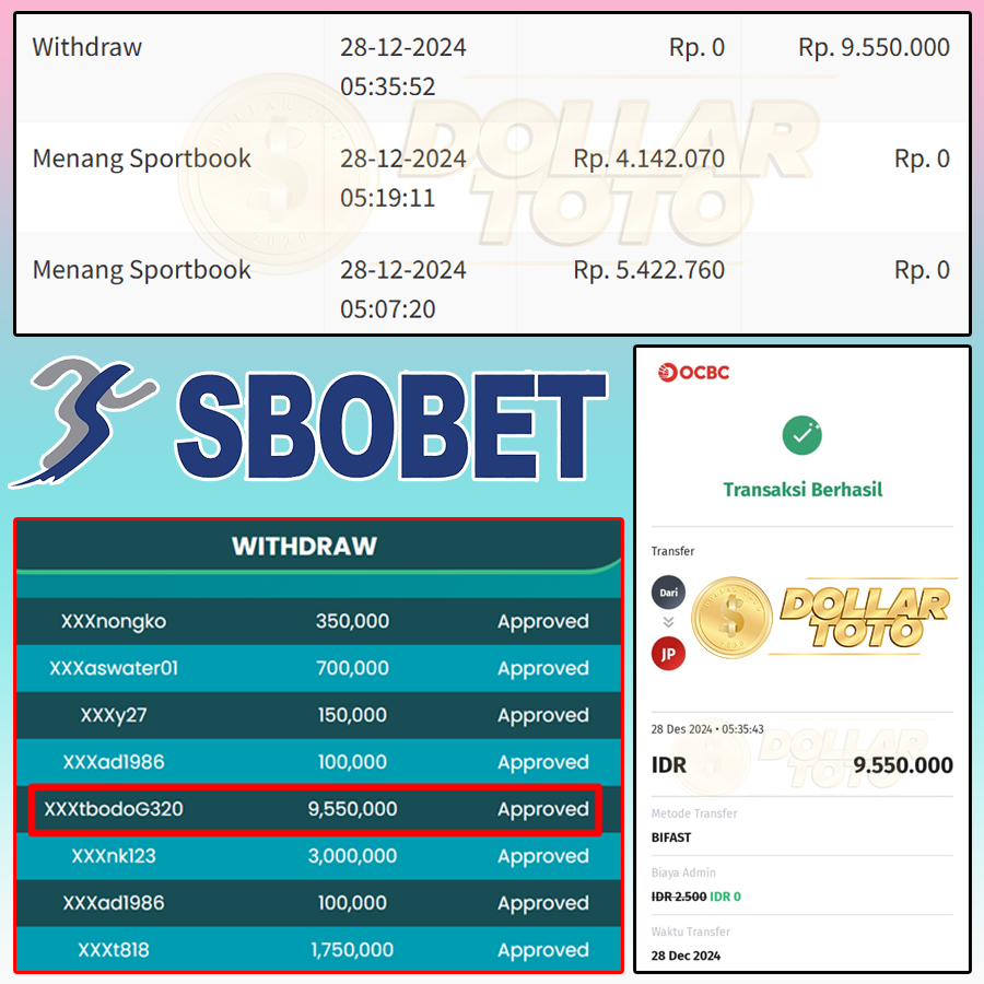 JELAS PROFIT!! SBOBET DOLLARTOTO WIN 9JT BOSKU!!