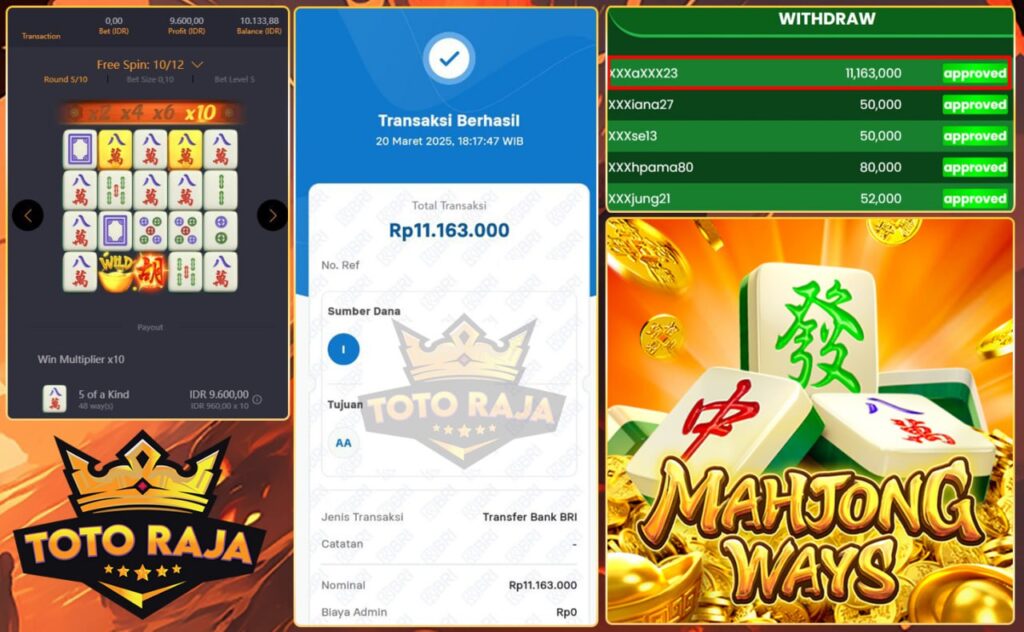 Selamat Kepada Member TOTORAJA dengan Username XXXaXXX23 Yang Beruntung Mendapatkan Kemenangan Besar di TOTORAJA  Dalam Permainan MAHJONG WAYS
