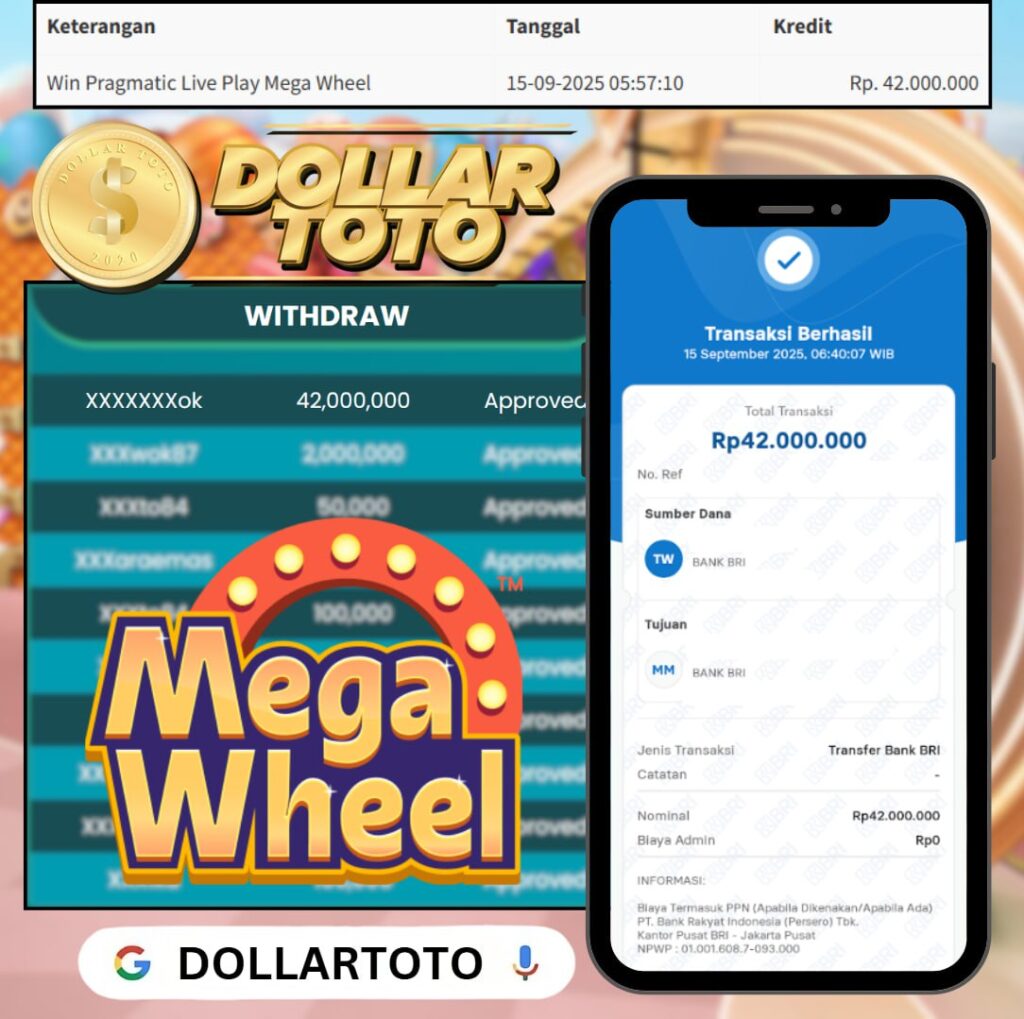 Selamat Kepada Member DOLLARTOTO dengan User ID KaXBXnXgXok yang Kembali Meraih Kemenangan Dari Game MEGA WHEEL – PRAGMATIC LIVE.