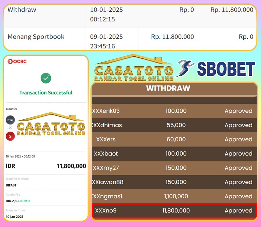 Untuk dana kemenangan sebesar Rp.11.800.000 Dana kemenangan sudah berhasil diproseskan tanpa adanya hambatan sedikit pun.