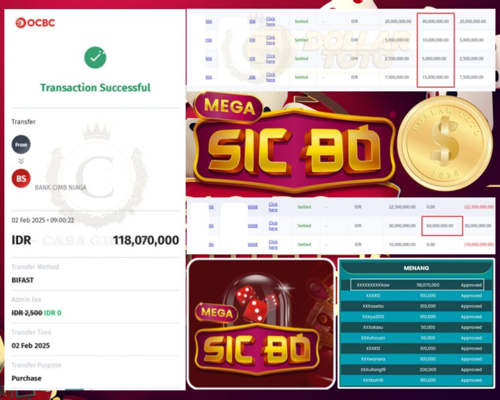 SELAMAT KEPADA MEMBER DOLLARTOTO, USER ID : XXXXXXXXXXXXXAw, MENANG DI GAME PRAGMATIC LIVE CASINO > MEGA SICBO