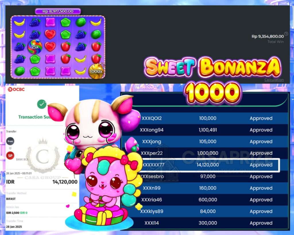 JOSS KEMENANGAN MENARIK DARI SWEET BONANZA 1000 DI BO CASAPRIZE MENANG 14 JT