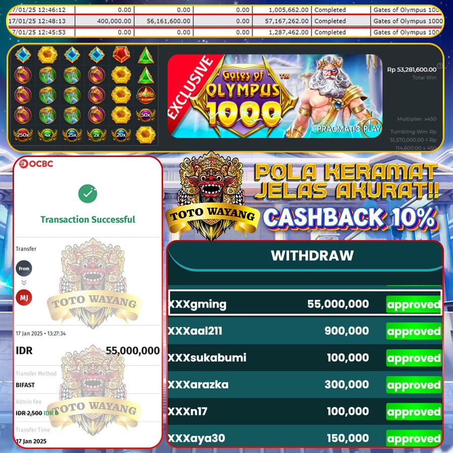 TOTAL KEMENANGAN DI DAPATKAN SEBESAR RP. 55.000.000 LANGSUNG DI BAYAR LUNAS TANPA ADA POTONGAN APAPUN !!
