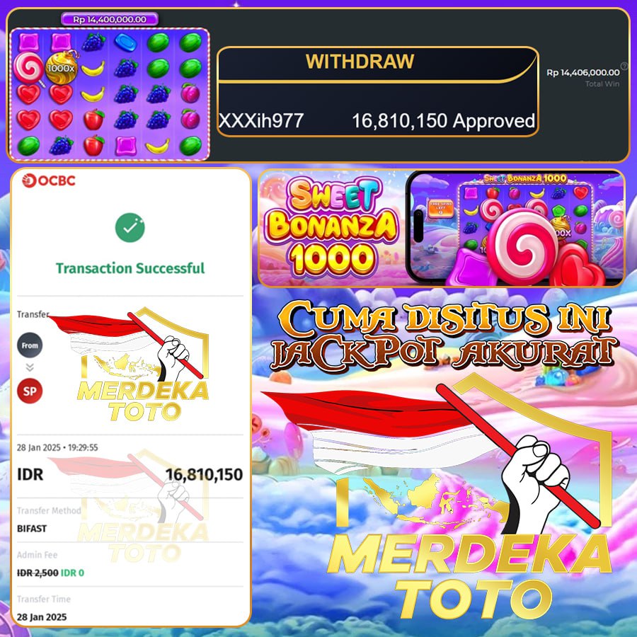 Selamat kepada bosku yang bermain di MERDEKATOTO dengan user id XXXih977 yang telah mendapatkan kemenangan besar di game SWEET BONANZA 1000!!⚡️ > PRAGMATIC SLOT