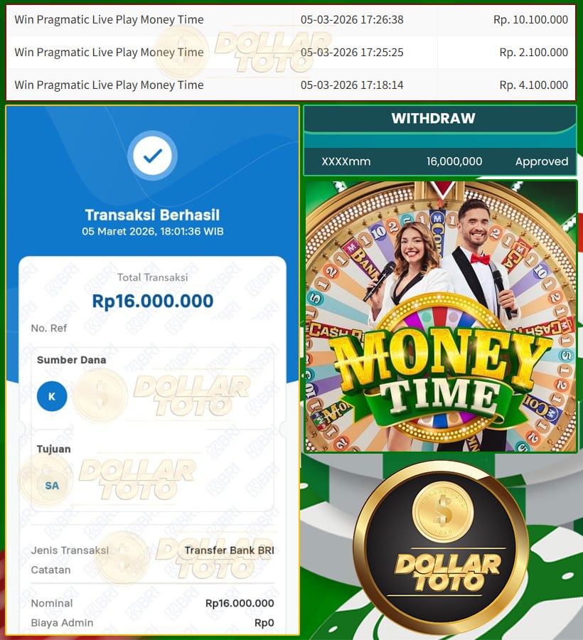 SELAMAT UNTUK MEMBER  DOLLARTOTO DENGAN USERNAME  XXXXmm BERHASIL MERAIH KEMENANGAN DI MONEY TIME – PRAGMATIC LIVE.