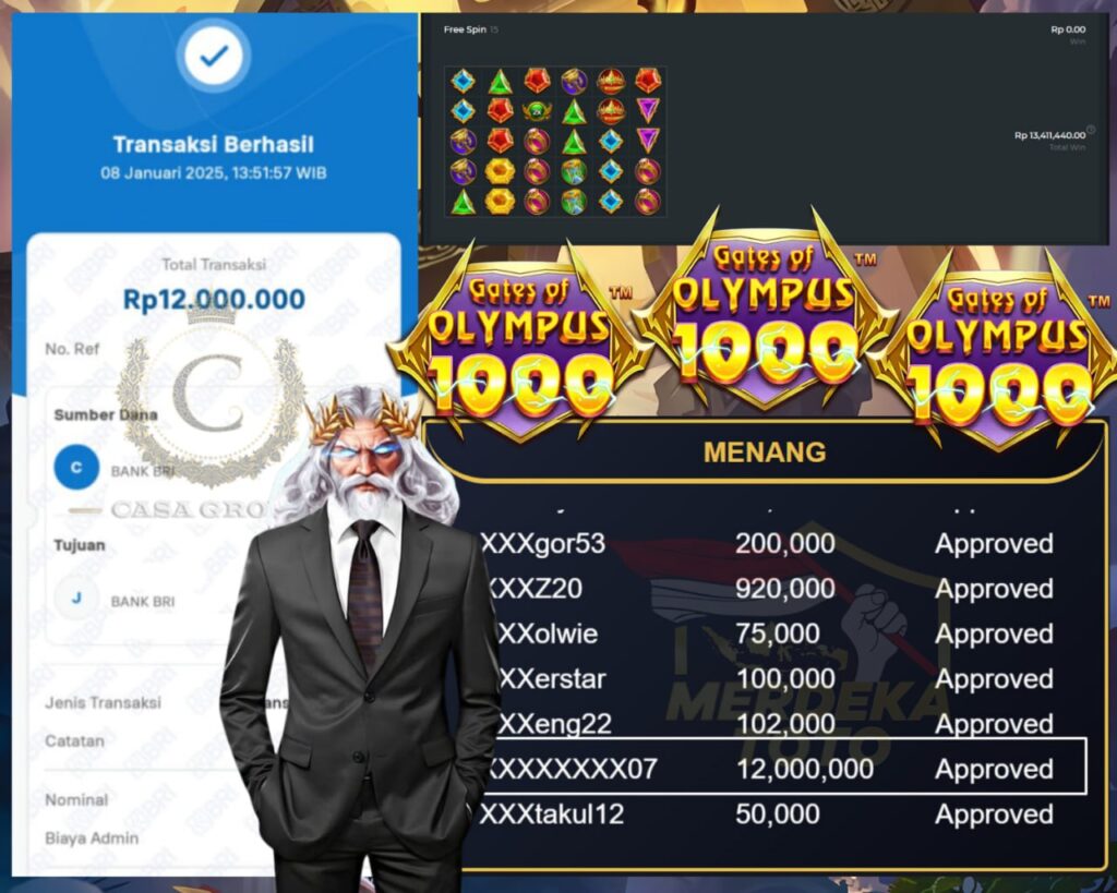 Selamat kepada bosku yang bermain di MERDEKATOTO dengan user id XXXXXXXX07 yang telah mendapatkan kemenangan besar di game GATES OF OLYMPUS 1000 > PRAGMATIC PLAY