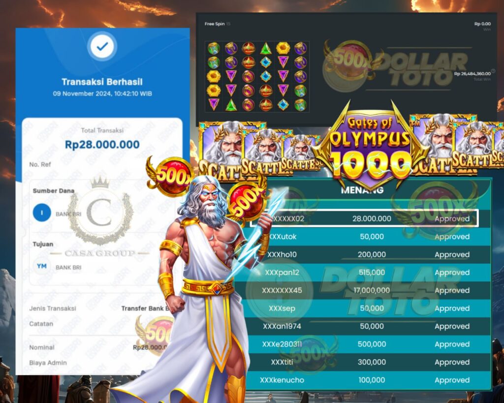 SELAMAT KEPADA MEMBER DOLLARTOTO, USER ID : XXXXXXXXX02, MENANG DI GAME PRAGMATIC SLOTGATES OF OLMPUS 1000.
