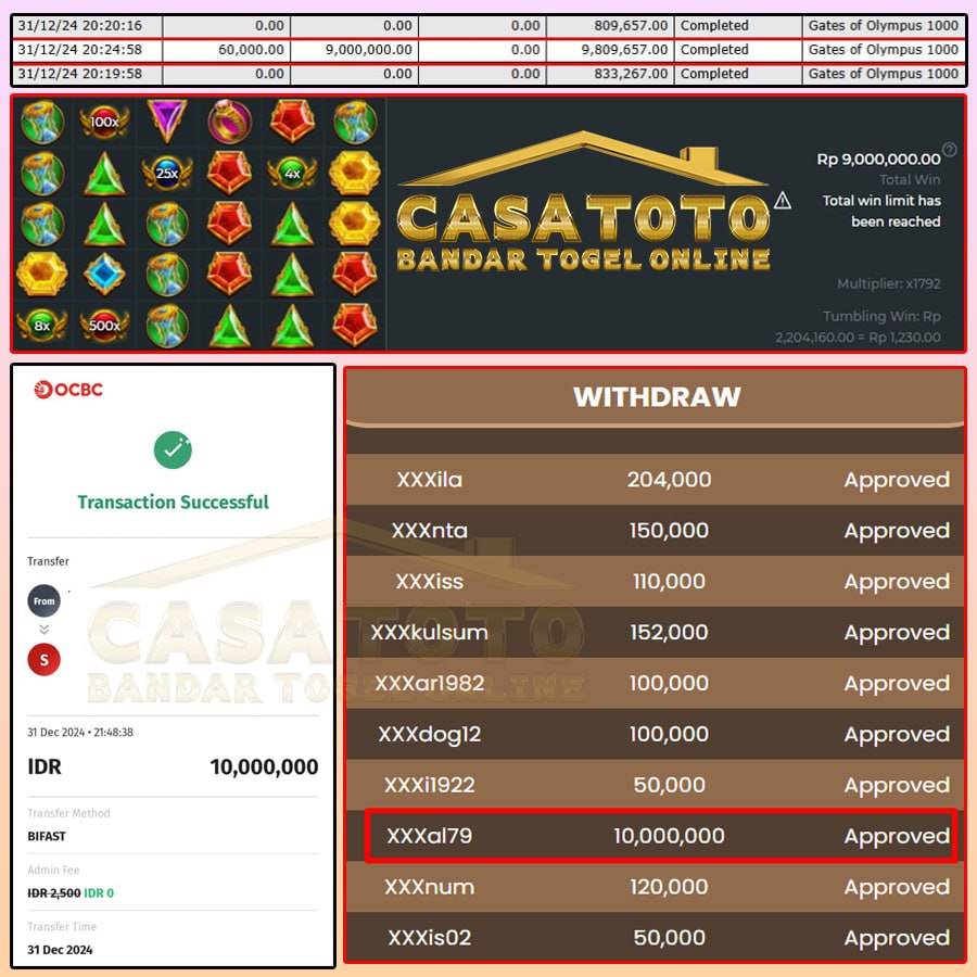 TOTAL KEMENANGAN MENCAPAI RP. 10.000.000 DI BAYAR LUNAS TANPA POTONGAN APAPUN.