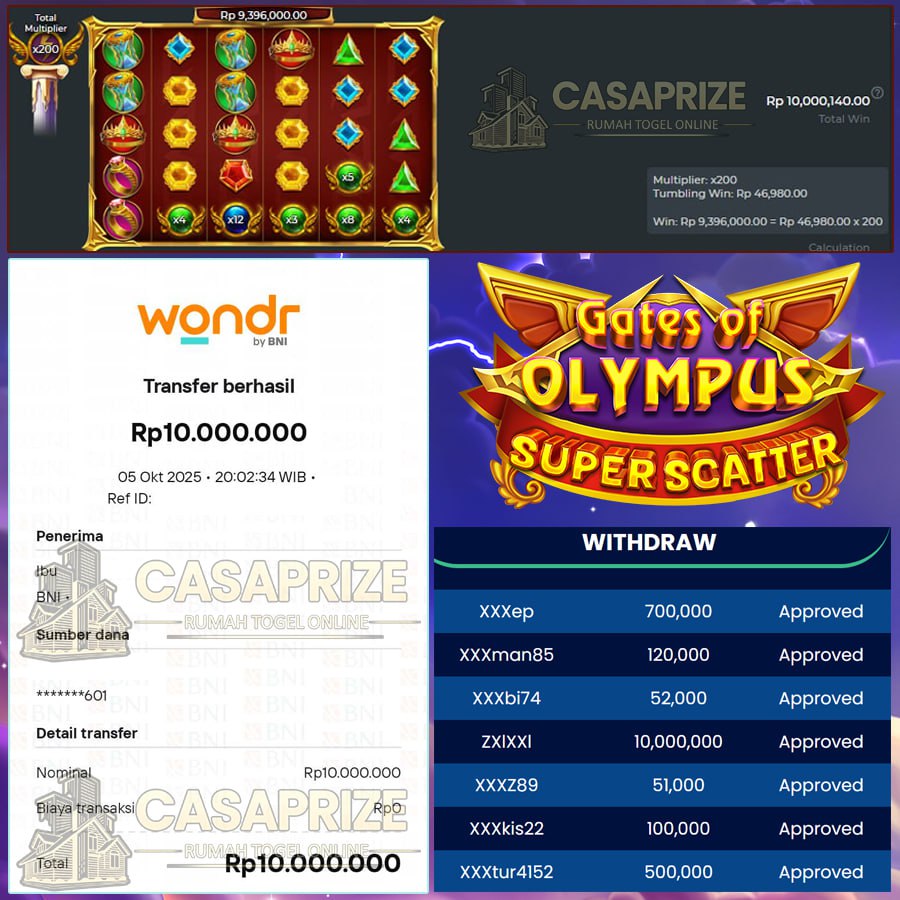 SELAMAT UNTUK MEMBER CASAPRIZE dengan Username ZXIXXI berhasil meraih kemenangan besar di permainan GATES OF OLYMPUS SUPER SCATTER – PRAGMATIC PLAY SLOT.