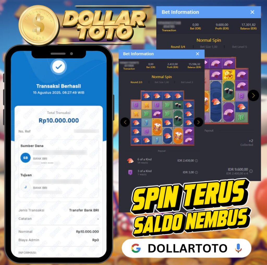 SPIN TERUS SLOTNYA DAN BUKTIKAN BAHWA KEBERUNTUNGAN BERPIHAK PADAMU!! JAKCPOT MENANG DI DOLLARTOTO