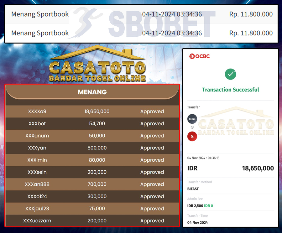Untuk dana kemenangan sebesar Rp. 18.650.000 dana kemenangan sudah berhasil diproseskan tanpa adanya hambatan sedikitpun.