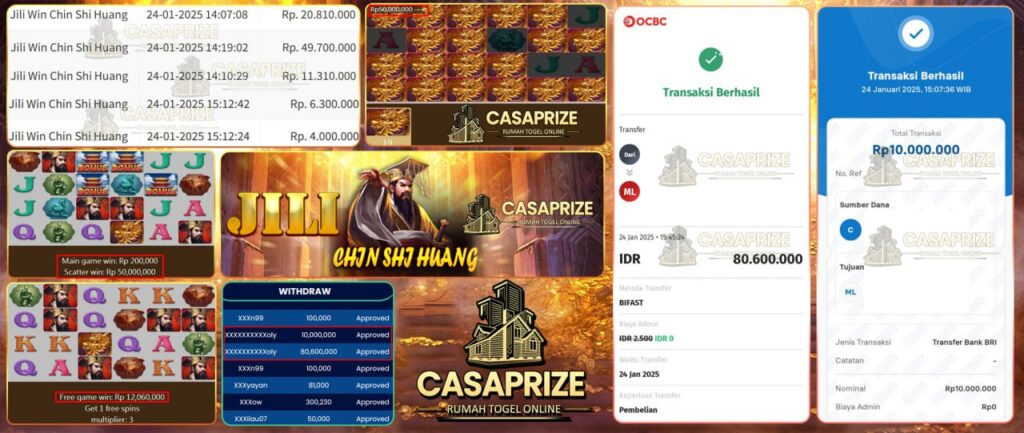 SELAMAT KEPADA PEMENANG JACKPOT USER ID XXXXXXXXXOLY DI CASAPRIZE MENANG DI GAME PROVIDER JILI >> CHIN SHI HUANG