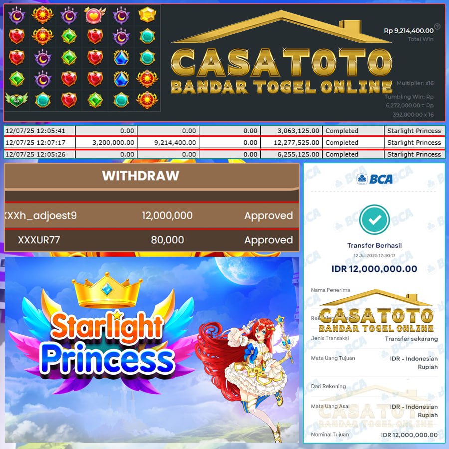 Selamat Kepada Member CASATOTO dengan Username XXX_adxxsx9 Yang Beruntung Mendapatkan Kemenangan Besar di CASATOTO Dalam Permainan STARLIGHT PRINCESS >> PRAGMATIC PLAY SLOT.